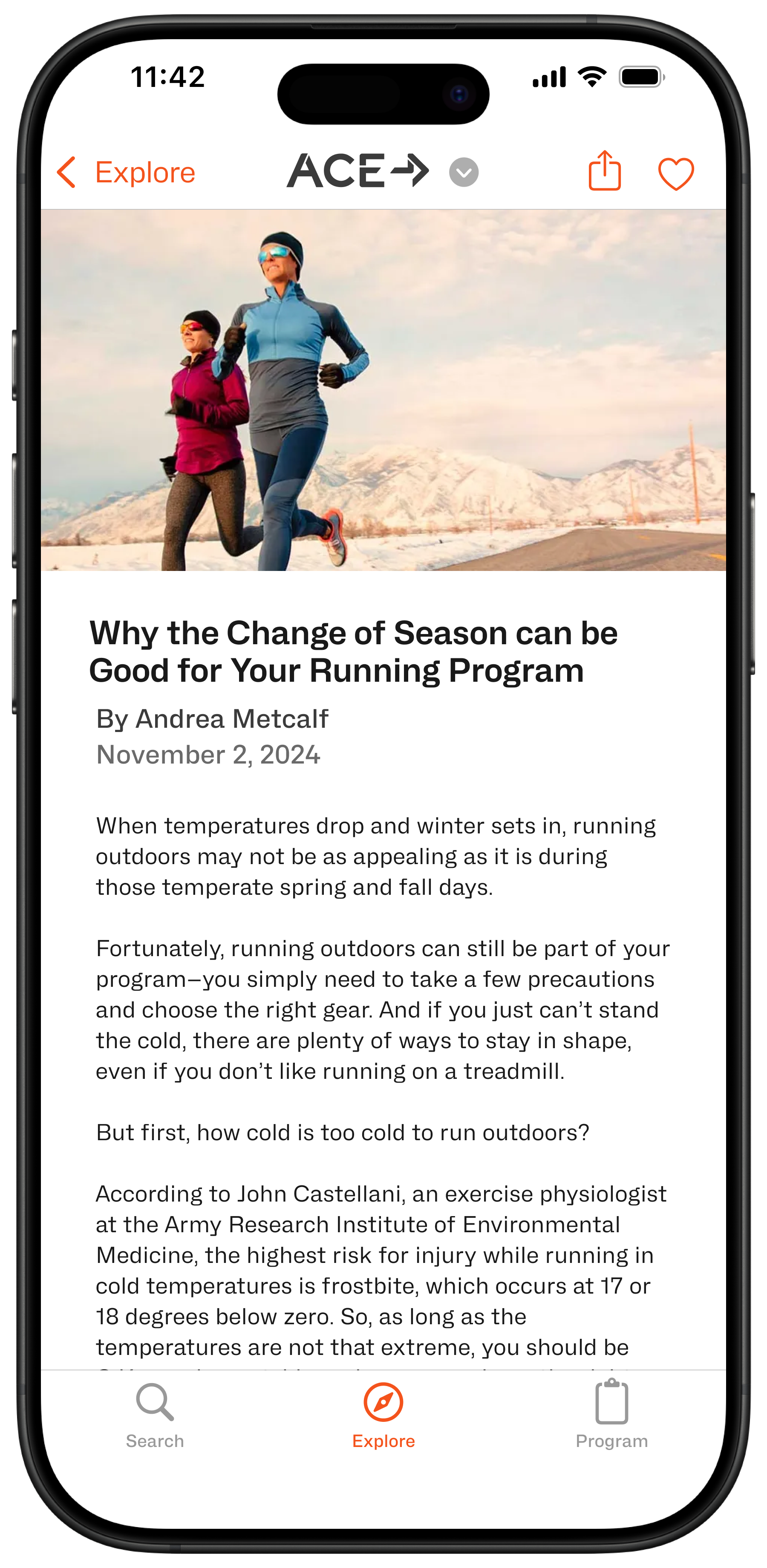Users can read about topics that interest them from the leading reputable, free journals and publications and discover new fitness topics with the Explore page. These article cards also appear within sections in the Program page that are relevant to the topic.
